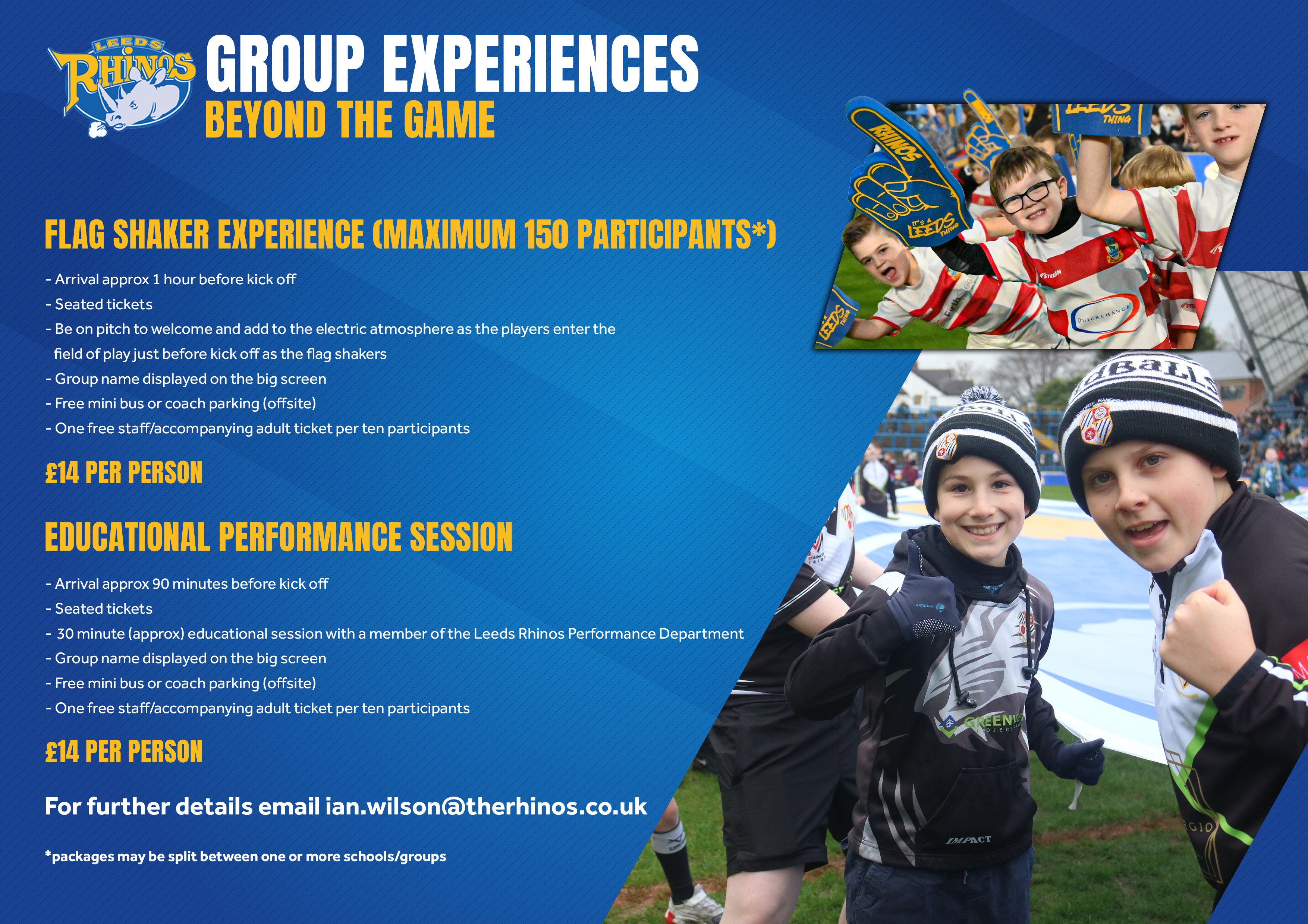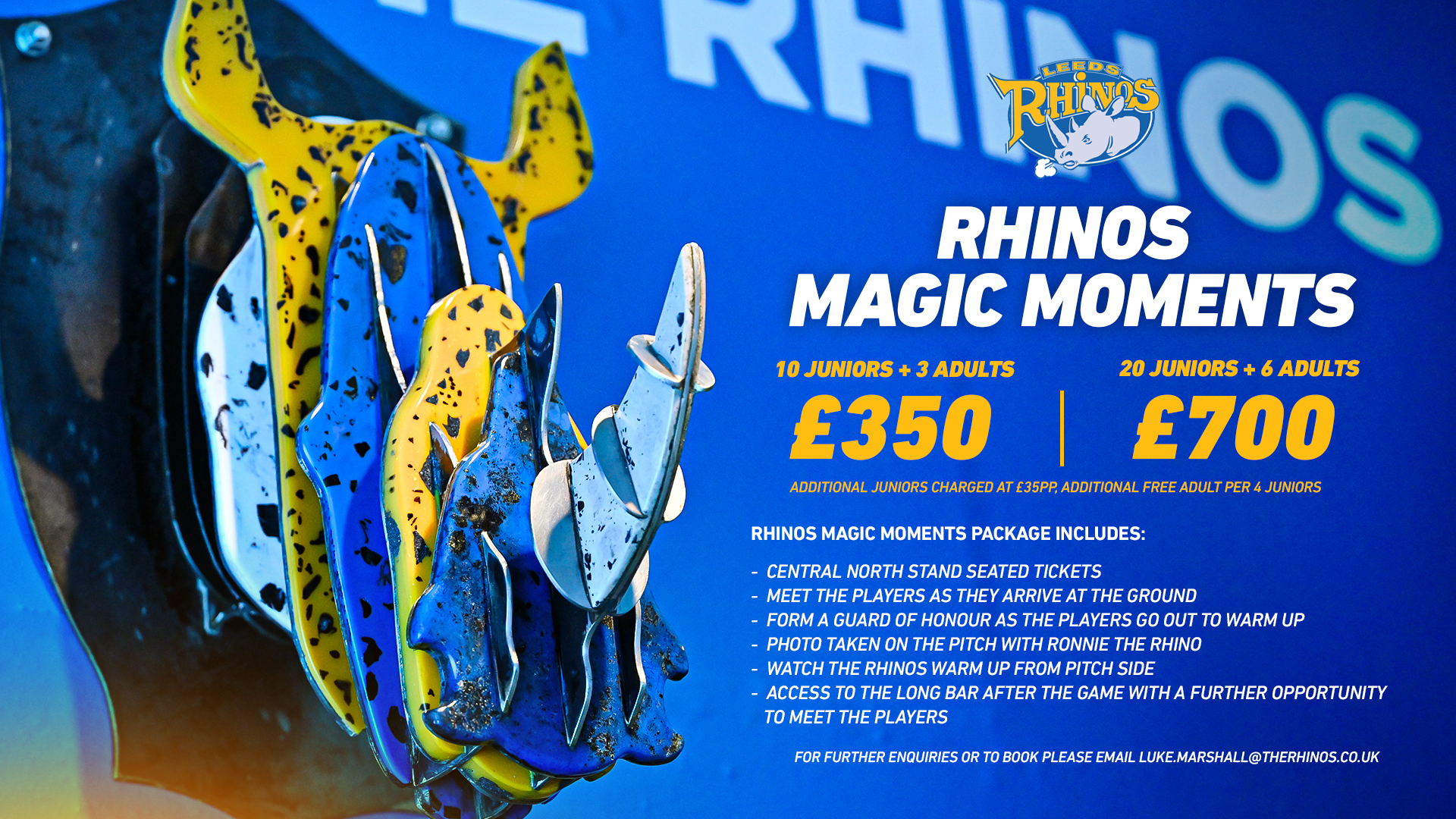 For more details or to book your package email ian.wilson@therhinos.co.uk