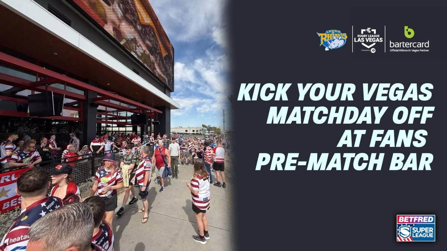 If you are heading to Las Vegas for the Rhinos clash with Hull KR on 28th February, get your matchday off to the perfect start by booking your place at the fans pre-match bar, within walking distance of Allegiant Stadium.